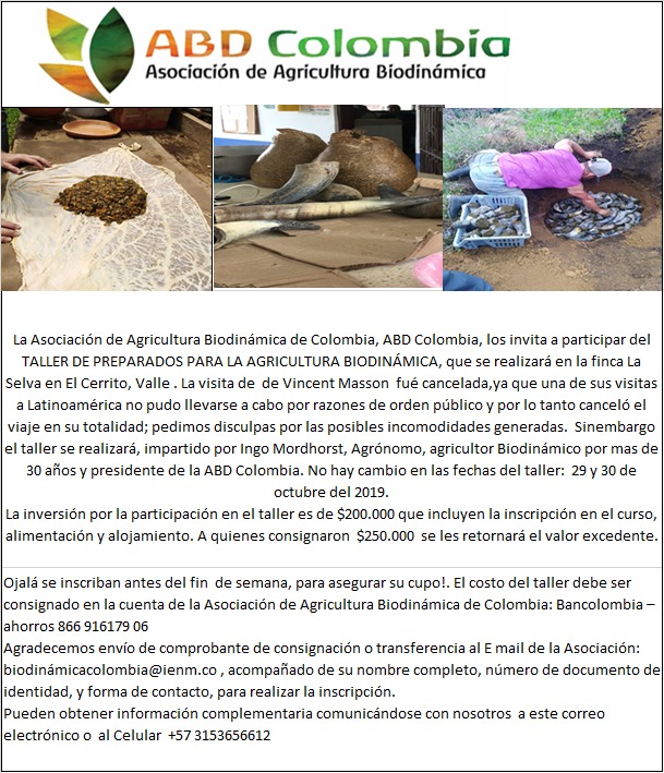 ¡La ABD Colombia te invita a ser parte de nuestro Taller de Preparados Biodinámicos! 🍃